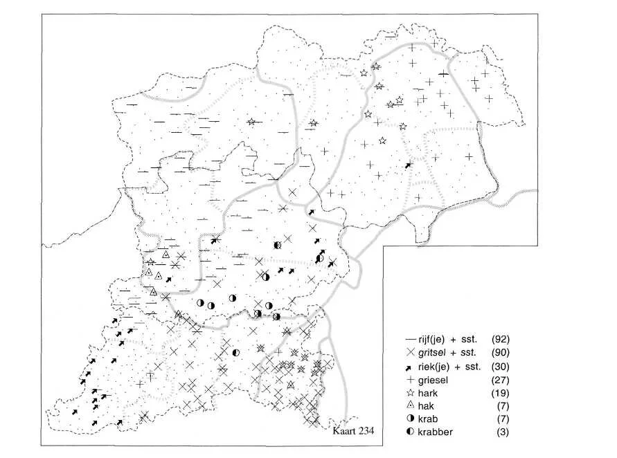 We posted pictures of agricultural subjects (barbed wire, rake, etc.) and birds and asked what they were called in our followers’ dialects. With the replies, consisting of the answers (dialect word) and placenames (localization of the word) we were able to compare the present-day situation of ethnolinguistic knowledge to earlier documentations, e.g., of data from the 1930s to 1960s from the databases of the Meertens Institute (Royal Netherlands Academy of Arts and Sciences KNAW) in Amsterdam.