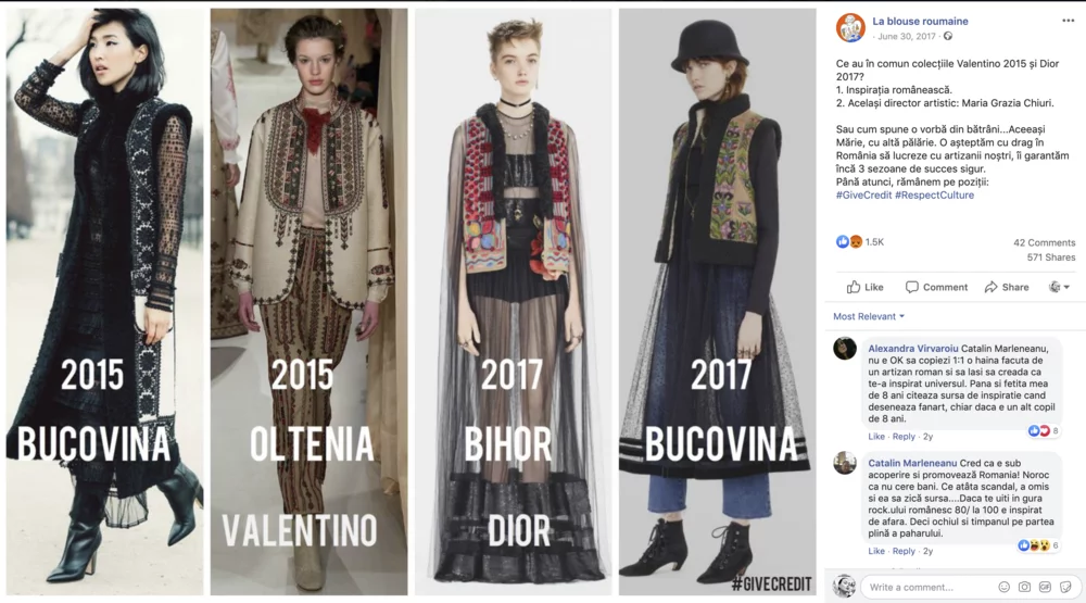 The story between Bihor and Dior starts similarly to other cases of cultural borrowing. A community called La blouse roumaine calls out Dior, on social media, for using traditional Romanian clothing as a source of inspiration for their 2017 pre-fall collection. Moreover, they accuse the renowned fashion house of plagiarizing (making an almost identical copy) of a traditional jacket.