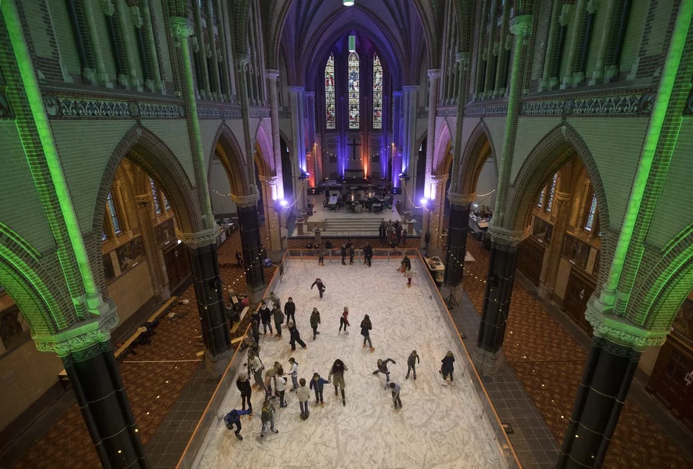 In Gouda, temporary ice skating rink was set up in the Gouwekerk in 2018 (Figure 10). The event was particularly popular among the local children.