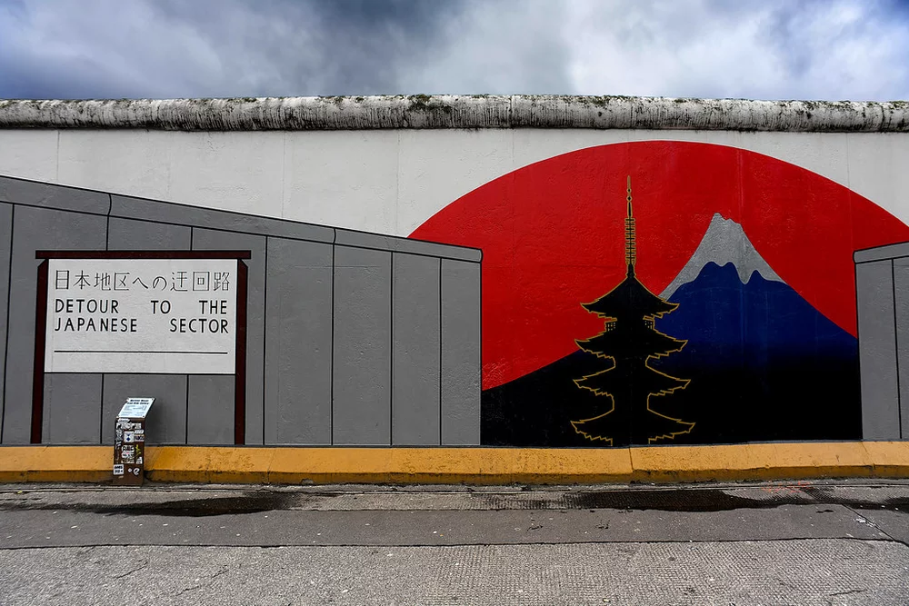Detour to the Japanese Sector is a metaphorical representation of the cultural and political divide between East and West during the Cold War era. It seems to offer a glimpse of the world beyond the walls and barriers, giving hope and inspiration to those who were previously unable to explore and learn about other cultures. It is remarkable how the fall of the Berlin Wall has opened up new opportunities for travel and cultural exchange, allowing people to connect and learn from each other in ways that were not possible before.