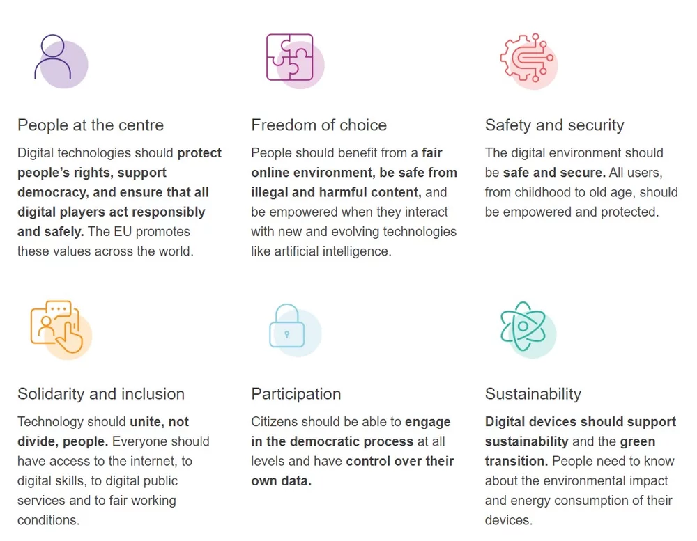 The EU digital literacy targets for 2030 highlight the notions of solidarity, inclusion, and participation and put people at its centre. A certain degree of inclusion is required to achieve these features of the 2030 goal, and democracy is arguably the better method to get to said achievement. Through democracy, the EU wants to unite people by granting access to digital technologies. The reason for this approach is that everyone should be able to actively participate in and support democracy and engage with political processes, all while maintaining control over their data. Engaging with democracy through digital technology requires knowledge of digital technologies and the ability to navigate through them. To understand democracy and engage in its processes, mastering digital skills is of significant importance.