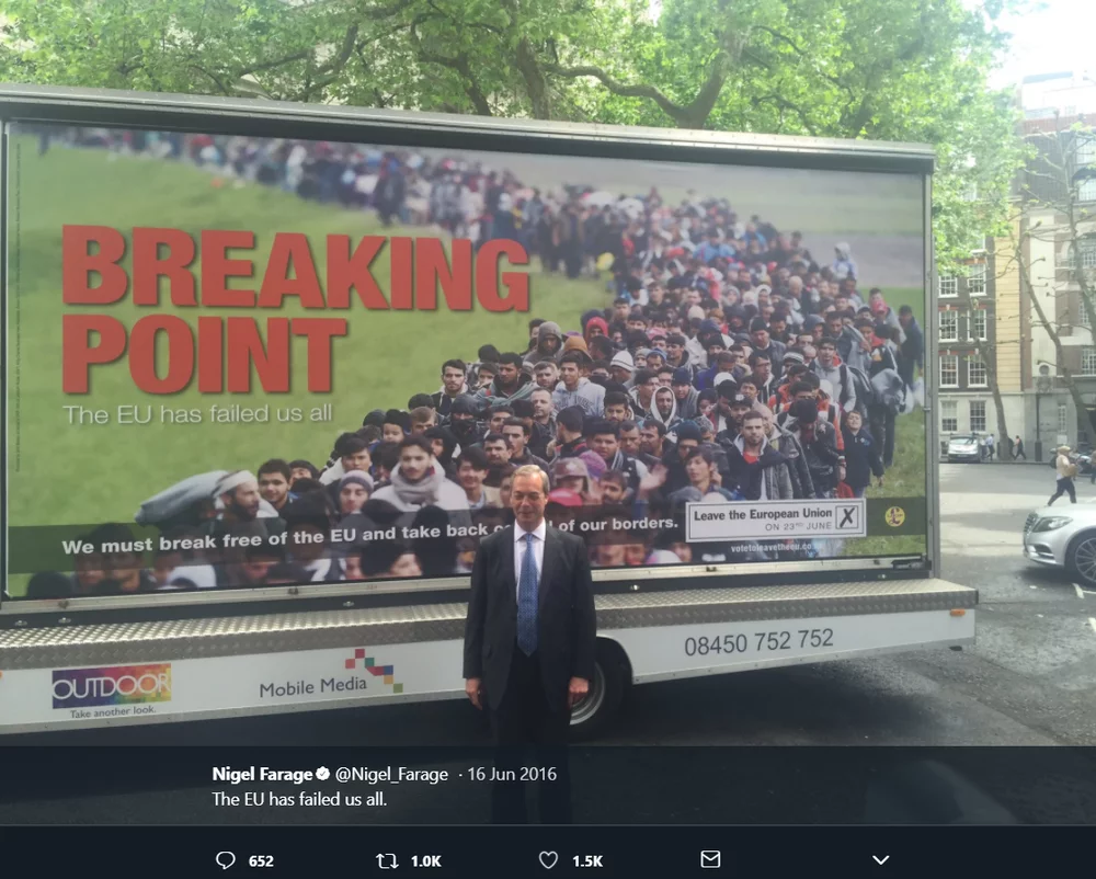 Stewart, H., & Mason, R. (2016, June 16). Nigel Farage’s Anti-Migrant Poster reported to Police. The Guardian. Retrieved last on November 30, 2017.