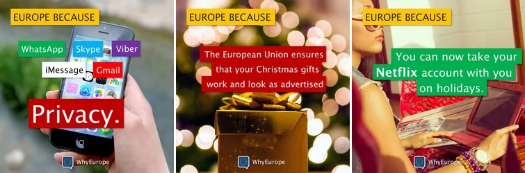 With a little less than 50% of the Europeans using social media in 2017 (eMarketer, 2016) it is a good way to reach people. Two initiatives that do a pretty good job in this are WhyEurope and Pulse of Europe. Their communication is pretty straightforward: They emphasize why Europe is important and how the EU improves our lives. The messages are short and easy to understand, no matter which level of education you have: