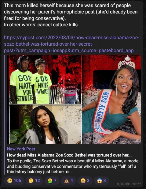 In this sense, McInnes also needs to create twisted messages using facts or news to further elevate its position. As we have seen before, McInnes is able to turn reality upside down in order to keep his 'anti-woke discourse' intact. In these two messages, the commentator takes the Johny Depp case out of context in order to put gender violence and the fight for trans rights, which is effectively a fight against gender as such, on the same level. In the current patriarchal context, this makes no sense. In his book of ideas, however, it does. He uses a similar strategy in the post of the right.