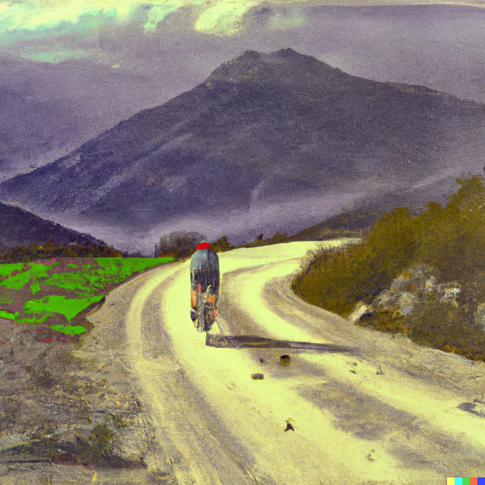 Dall-E 2, a portmanteau of Salvador Dalí and Pixar robot Wall-E, is one such model that generates artful, photorealisic images from descriptions in natural language. For instance, the prompt "an autochrome painting of a gravel cyclist in the mountains" generates the following image.