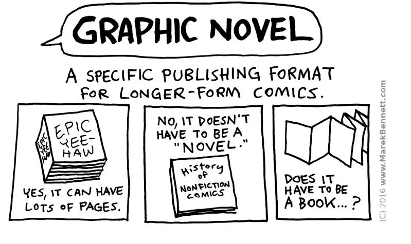 Graphic novels are a contemporary literature form of long stories told in comics format. They have the same characteristics of comics: multimodality, cartooning techniques and elements (panels, gutters).