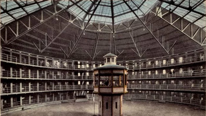 The concept of the panopticon as a surveillant landscape is an important one when speaking about not only general surveillance by, for example, the government or companies and organizations but also through peers. Surveillant landscapes are "built environments that are designed to make people and their actions visible and legible" (Jones, 2017). The general idea of a panopticon was discussed by Michel Foucault in 1975 and is a model of a modern prison that is designed in a way in which a single guard can watch all prisoners (Figure 1). The prisoners on the contrary are limited in their ability to see other prisoners and the guard and hence do not know if they are watched at the very moment or not, which causes discipline power. The design of the panopticon makes the one being observed well aware of the fact that they could be monitored and visible to authorities and some other prisoners at all times, which leads to a continuous and conscious act of adjusting one’s behavior to not attract attention.