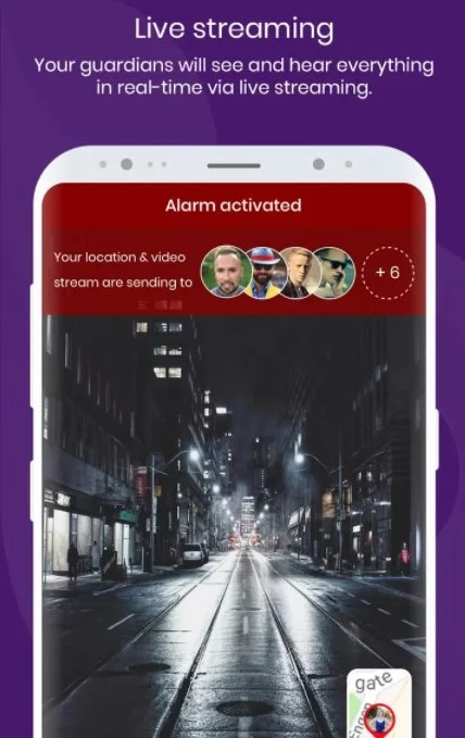 Personal safety apps introduce another layer of visibility to public spaces that is initiated by the user, rather than by the architecture of the public space itself. According to Jones (2017), public spaces are surveillant landscapes by nature because they enable visibility: they are “built environments that are designed to make people and their actions visible and legible”. Visibility can make people vulnerable depending on how power operates within a surveillant landscape, but it can also make them feel safe. In the latter case, visibility of and by others, for instance through lighting and CCTV cameras, can even be crucial in individuals’ feelings of safety (McCarthy, Caulfield & O’Mahony, 2016). This is perhaps why most personal safety apps are designed to help users contact someone they trust as soon as they feel at risk (Ranganathan, 2017). For example, the app bSafe lets users create their own ‘security network’ out of guardians they trust. The app contains several features that are designed to make users feel safe, such as GPS tracking, timer alarms, fake calls, and an SOS button. When the user activates the SOS button manually or through voice activation, their guardians get access to their location and can see and hear what is happening via live stream (as shown in Figure 1) (bSafe, n.d.).