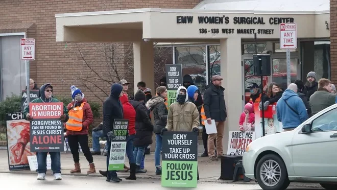 In 2021, even a global pandemic did not withhold radical pro-life supporters from protesting. Not exactly surprising because less than half of white evangelicals reported being willing to get vaccinated. The most conservative right-wing Christians seem to be leading the anti-vax movement (Coren, 2021). In Figure 5, such a pro-life protest is shown, where pro-lifers block the entrance of a women’s surgical center in Louisville, Kentucky. They carry signs with extreme slogans like “Abortion is murder” and religion-laden slogans like “Forgiveness can be found in Jesus Christ alone”. There are clinic escorts to accompany patients inside. Pro-lifers scream and preach at the people going in.
