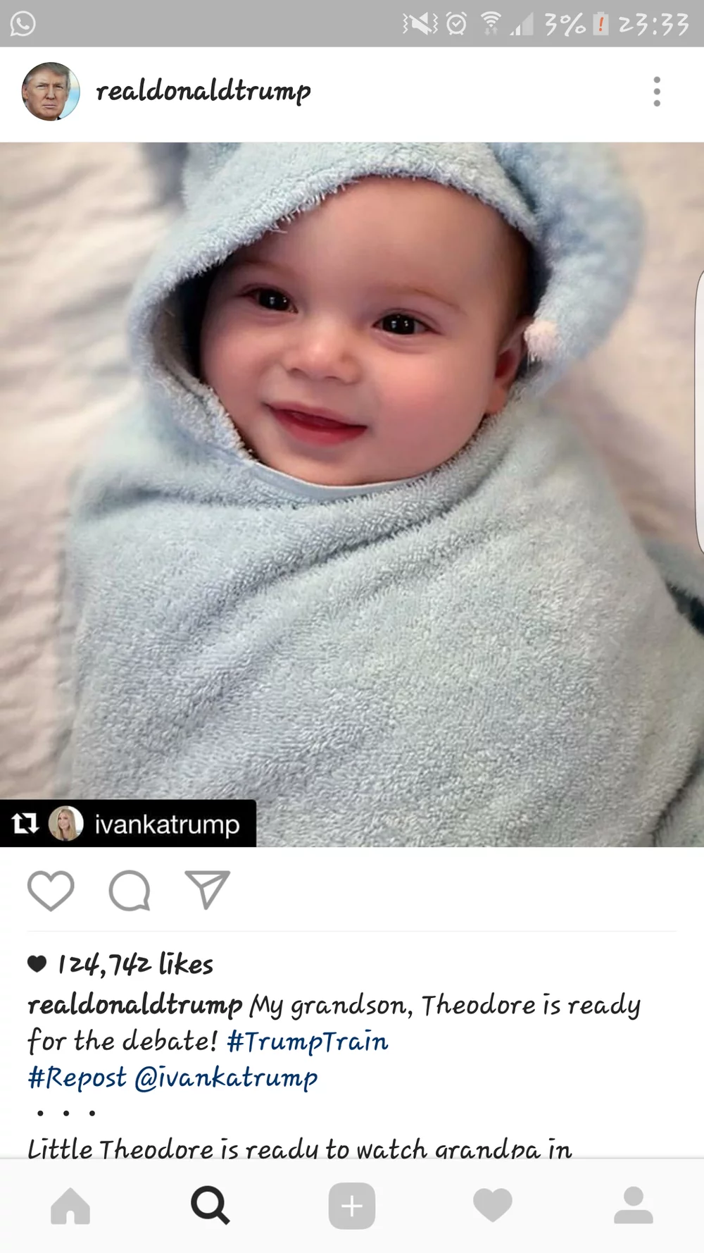 A similar post can be found on the page of 'Christians for Trump', who used the same technique. It starts with one of the most common Christian phrases: 'God loves us all'. However, after this statement, a contrast quickly emerges in which phrases such as 'genocide of the Christians' and 'with our money' almost immediately catch attention. Future genocide and the idea that American citizens would help this with their money, gives rise to anger within a common situation. What Christians might expect as a safe option is to find a father, Trump, who would fit their patriarchal views, who would fight for future generations of the USA and the sanctity of human life.