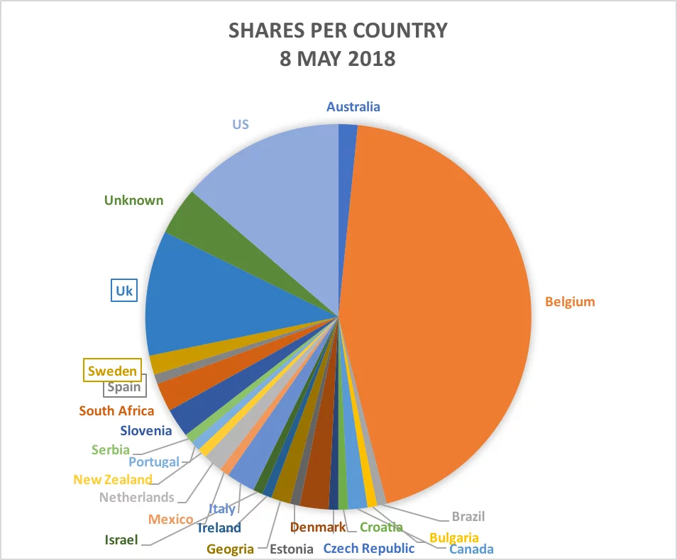 Kijken we naar de laatste 70 shares van de video (Juni 2018), dan zien we dat de Belgische profielen maar verantwoordelijk meer zijn voor 10% van de shares. 9 shares komen uit Zuid-Afrika, 7 uit de UK en 16 geven geen verblijfplaats aan. Opvallend is dat minimaal 16 profielen als globale Nieuw Rechtse activisten kunnen beschouwd worden. Deze profielen doen niets anders dan constant Nieuw Rechtse propaganda sharen en posten uit alle hoeken van de wereld.