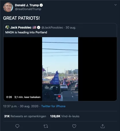 In such quotes, the name of Trump’s campaign team on Twitter - Trump’s War Room - gets an extra meaning. Whereas Biden’s campaign is run by the amaible ‘Team Joe’ on Twitter, the Trump campaign sees itself as in the midst of a war. The contrast couldn’t be bigger. This war metaphor is not only visible there, it is at the heart of his campaign. Trump is not campaigning, he is a president fighting a war. A war against the liberal elites and behind them the radical left. They are seen and portrayed as the ones willing to bend the law to get Trump out of the White house. As the ones staging a coupe and as the ones willing to defund the police, open up the borders and allow the rioting and thus crumbling down of America.