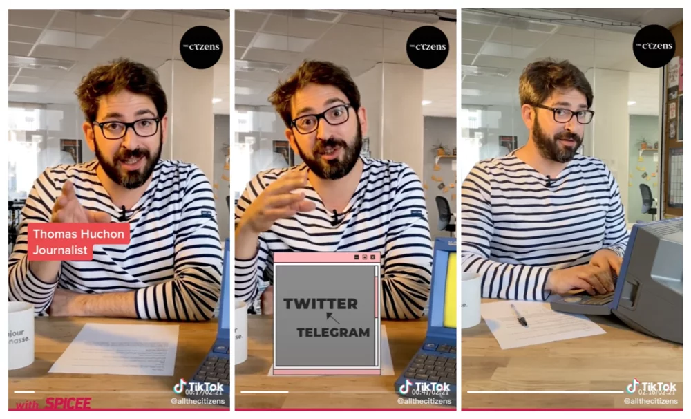 Finally, there are what we dub ‘migrated professionals’. These are users that already concerned themselves with information disorder outside of TikTok and migrated their expertise to this new platform. In this category we mostly find academics and journalists, like Thomas Huchon, a French journalist who made a video for the TikTok account of All the Citizens (@allthecitizens).