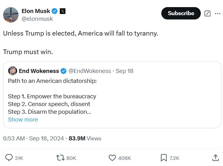 Thompson, S. A. (2024, September 27). 5 days with Elon Musk on X: Deepfakes, falsehoods, and lots of memes. The New York Times. https://www.nytimes.com/2024/09/27/technology/elon-musk-x-posts.html