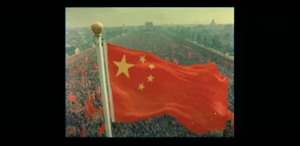 The specific semiotic meaning of national flags depends on the context. In MPMC, flags are used for fulfilling various political purposes too. For instance, the first story The Eve revolves around issues in making the first official Chinese flag and in hoisting it automatically. The red, a colour that is often associated with China, is omnipresent through the whole story—when calling for citizens to contribute all red cloth they have, repeated rehearsals of flag hoisting, and most important, on PRC’s founding ceremony. The nation flag here is strongly associated with national unity. Likewise, in Going Home, unsurprisingly the red flag appeared several times too especially during the handover ceremony when British flag was taken down, highlighting the difference of in-group and outgroup and thereby strengthening Chinese national identity and in-group solidarity. The presence of Chinese red flag can easily be found in other episodes as well: in Passing By, the screen is filled with red national flags when the crowd hears and celebrate the news that China successfully detonated its first atomic bomb (see Image 3 below); in The Champion, the screen is fully covered with a massive piece of the red flag when the little boy wants to give up holding the antenna and when Chinese female volleyball team won their first golden Olympic medal. In the first instance, the red flag is an embodiment of national pride. The same emotional sentiment is sent in Hello Beijing in which red flags appear during the Beijing Olympic Opening Ceremony. Red flag in the second scenario is a suggestion of personal sacrifice and a loyalty to the CCP: subordinate personal interests to those of the general public, Dongdong’s neighbors in this case.
