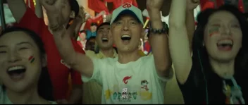 Although MPMC contains stories of 7 totally different topics, we sense highly consistent themes across the seven episodes, namely sacrifice, pride and happiness. In the first story, The Eve, the protagonist Lin faces great difficulties in ensuring a smooth functioning of the flag hoisting. There was no proper version of anthem that can be played for rehearsal. Neither did he can he find suitable cloth for making Chinese flags. The flag fixture on the flagpole broke down hours before the founding ceremony was inaugurated. To solve all these issues, Lin devotes himself completely to his work. His sacrifice is underscored by the appearance of his wife, who sent over his favorite snack Rolling Donkey and narrated “Lin hasn’t been home for a month.” Such devotion is rewarded with the well-functioning of flag hoisting in the nation ceremony day. The first story ends with a scene in which Lin jumps high (see Image 4 below), an indication of his joy.