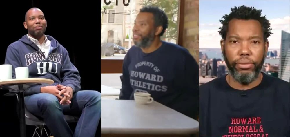 Another thing notable about Coates’ sweatshirt is its print: the front bears the lettering of his alma mater, Howard University. And this is not the only interview in which Coates appears wearing the University’s merchandise (see for example here and here, and screenshots from these videos in Figure 3). This is noted by Melvin too, remarking on the shirt as he asks Coates about his son attending Howard University. As in Between the world and me – which has the form of a book-length letter-style essay to his then fifteen-year-old son – he speaks highly of the school, which for himself meant a formative experience that gained him a broad scope on the beauty and intelligence of black people (Coates, 2015; Today, 2020). Throughout the book, he refers to the school as his personal “Mecca” (Coates, 2015, p. 39), besides its education most prominently because of its celebration of black identity, and its extensive library of African-American literature. Coates employs the school to represent the “black power … the view taken in struggle” (p. 149) and the “love power” (p. 149) that hold African-Americans together: “they made us into a race. We made ourselves into a people” (p. 149). Contradictory to Baldwin then, Coates’ authorial posture not so much emphasizes his individuality but propagates the togetherness and shared values of black American people. He is aware of the power of his appearance in the persuasiveness of his role as a public intellectual. This awareness can be interpreted from Heynders’ (2016) heuristic level of aesthetic performance and theatricality: