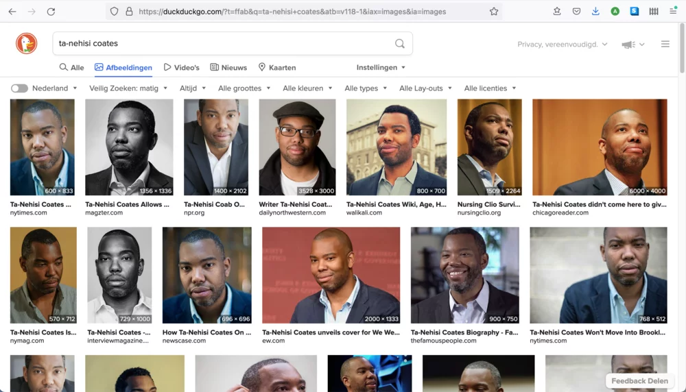 When doing the same quick image search performed for Baldwin, the query ‘Ta-Nehisi Coates’ returns a similar roll of author pictures (see Figure 2), but Coates’ dressing style is notably different. Apart from this being another person and obvious visual historical differences, it is striking that Coates’ clothing is much more demure. He appears either in a dress shirt, or a shirt and jacket (but without a tie). This could be taken to suggest that Coates, contrary to Baldwin, emphasizes much less his individuality, and more so his professionalism as a writer. When turning to the video itself, an interesting contrast becomes apparent: in the video, Coates is not wearing a jacket or shirt at all, but a baggy, informal sweatshirt. Additionally, he has exchanged his previously shaved hair and light stubble (as can be seen in the pictures) for a full head of hair and a beard (Today, 2020). Although the interview takes place in the context of the pandemic, which could be said to explain the difference in hairstyle, I would argue it can be seen in a broader context that reconciles Coates’ ‘professional’ search results with his casual appearance in the video. Rather than contrast the neat (but unexceptional) and casual attire, I would say they are both expressions of Coates’ privileging subject-matter over looks: his appearance communicates that he does not care too much about appearances, but about ideas; it communicates that he is a public intellectual engaged in goals that stretch beyond himself as an individual.