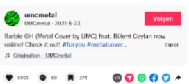 UMCmetal [@UMCmetal]. (2021, May 23). “Barbie Girl (Metal Cover by UMC) feat. Bülent Ceylan now online! Check it out!” [video]. TikTok.