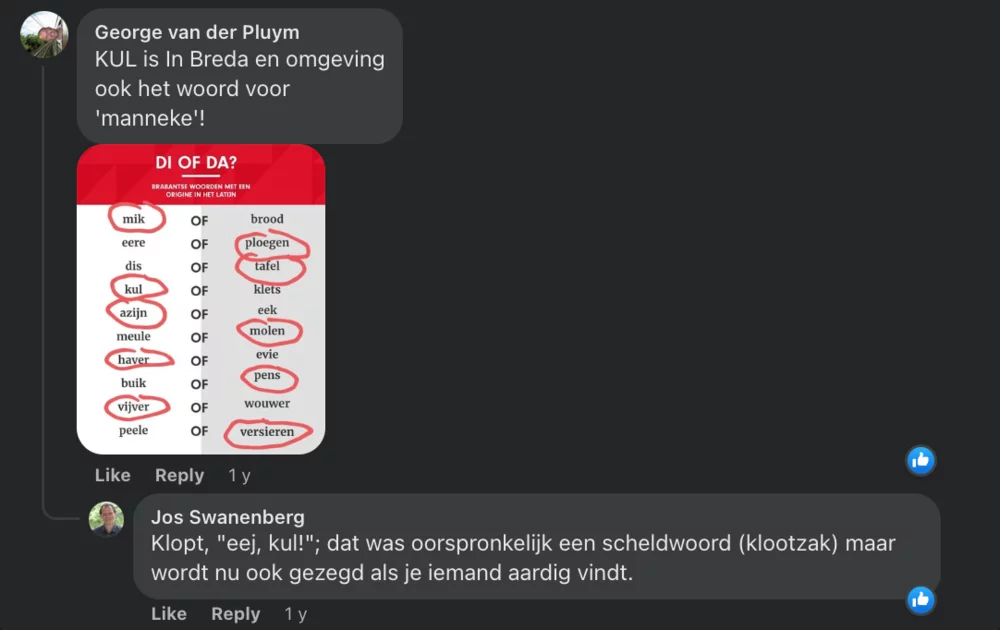 As a scholar, I often answer questions and add information to discussions on the social media of ‘Brabanders en hun taal’. But being part of such a community also offers opportunities for citizen science (Ciolfi et al. 2017). The collective of the members in such a network provides highly valuable complementary knowledge. Each member has its own interests and expertise and is willing to exchange knowledge and experiences.