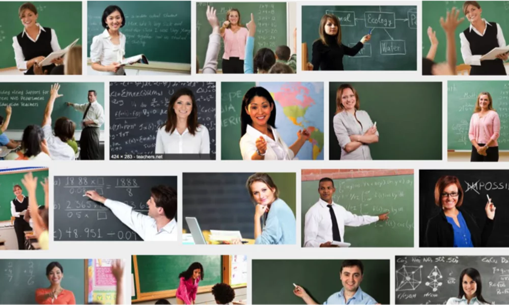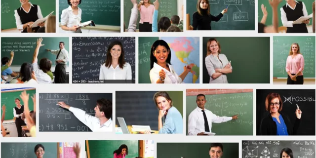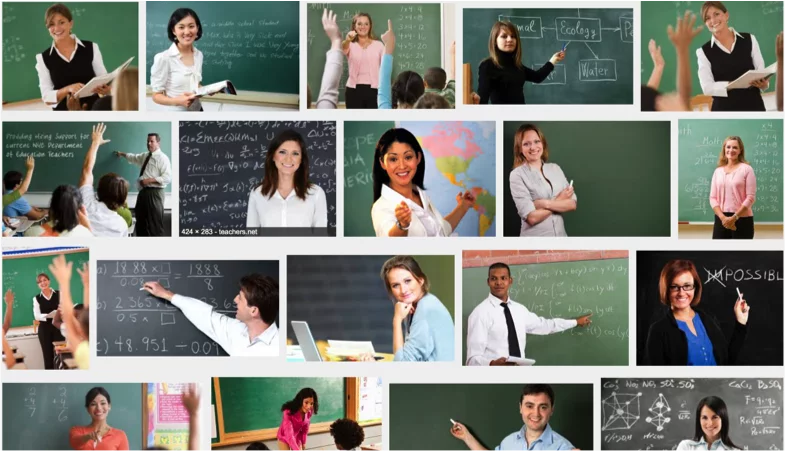 When one enters ‘Teacher' in Google the images depicted in figure 1 pop up. The first thing to notice is the prevailing uniformity in the different images. The typical chalkboard is instantly recognizable, present in every photo yet absent in every classroom. The unmistakable smile on every figure's face exposes a relaxed and in control attitude. We also see every figure communicate with either the viewer or a student. In almost every image we see the teacher depicted from the waist up. Furthermore we see a flawless dress code of white blouses, ties and pastel coloured tops. Altogether it shows a classic example of a stereotype.