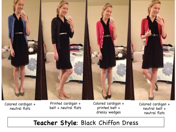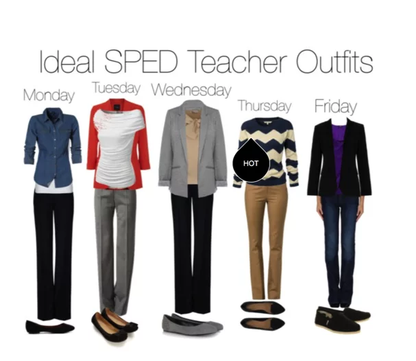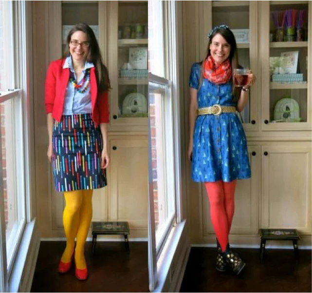 When we return to my personal case I would say that although I conform to the teacher norms, I did not loose the art student visuals completely. In order to show that I am an art teacher and not any other teacher I display details to indicate that distinctionsing semiotic features to offer others a readable script. To show how the culture of detail works we zoom in on the teachers’ dress code. The Internet is full of examples and ‘inspiration’ of how a feminine teacher should dress. Figure 4 and 5 show examples of this norm. Showing a very descent way of dressing with skirts just above the knee or long trousers and covered shoulders. The flat shoes, the jacket or vest seems also typical for the teachers’ look.