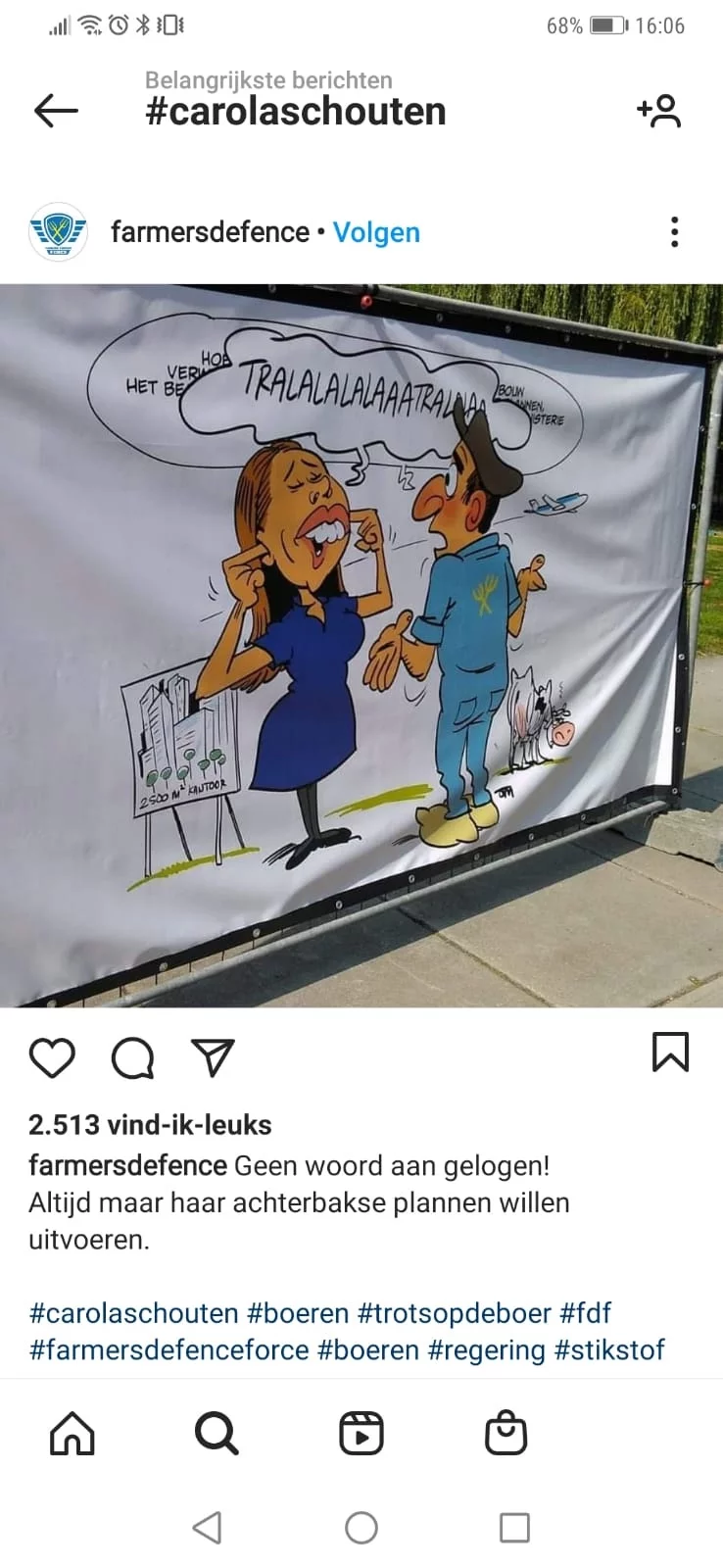 Algorithmic activism is then about spreading and interacting with the messages of the politicians or movements you identify with in order to make them more visible. Dutch farmers are indeed performing audience labor by liking and sharing the messages and posts of, for example, Agractie and Farmers Defence Force.