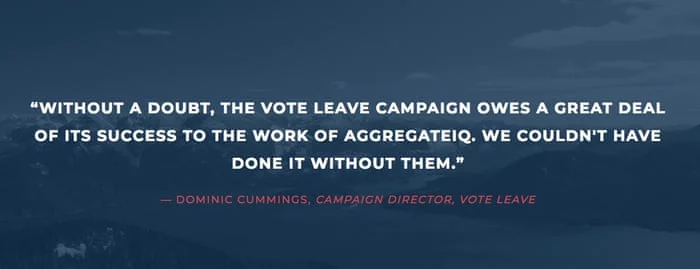 Following Leave's Brexit success, AIQ’s website was emblazoned with a quote from Vote Leave’s campaign manager Dominic Cummings that encapsulates the integral role that AIQ played: We couldn’t have done it without them.’ This has since been removed following criticism of AIQ for its apparent improper use of personal data throughout the campaign, likely contributing to Leave's success.