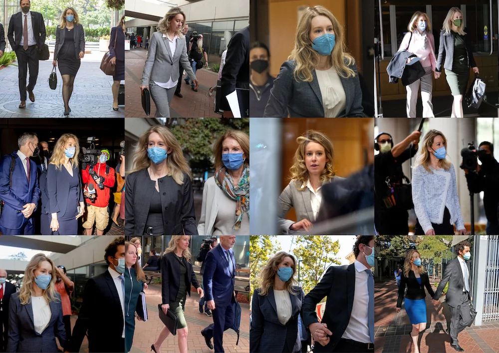 This article described a case of performed identity, taking Elizabeth Holmes as an example: a woman who tactically moved throughout a male-dominated field using the right jargon, a fitting discourse, on-point marketing, and intertextuality. It made her reach the top in Silicon Valley, as Holmes fit exactly into the Silicon Valley mentality. However, as more and more information came to light, Theranos seems to have been conducting illegal business (Karlamangla, 2021). Holmes' appearance and actions became a center of attention when these allegations came to light. As she began to lose her credibility, ex-colleges felt comfortable speaking up and telling stories about her ‘acting personality’ such as the way she spoke and the uniforms she wore. A performed identity she apparently lost whenever she was in a comfortable environment or when having a drink (Business Insider, 2019). That old appearance is completely gone and she now only appears in 'soft' colours and styles since the allegations became known. Elizabeth Holmes went from a figurehead for feminists who wished to see a change within the male-dominated Silicon Valley, to a massive fraud (WSJ, 2021).
