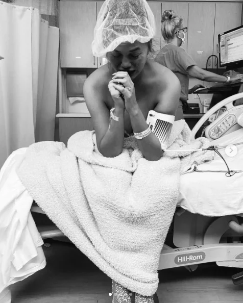Halfway through her pregnancy (Ives, 2020), on October 1st, she shared the photos of her stillbirth to inform her followers of what had happened. She explains (2020a): “We are shocked and in the kind of deep pain you only hear about, the kind of pain we’ve never felt before. We were never able to stop the bleeding and give our baby the fluids he needed, despite bags and bags of blood transfusions. It just wasn’t enough”. Later in the caption she thanks her audience for the “positive energy, thoughts and prayers” and expresses her gratefulness for her two children (Teigen, 2020a). However, this day — and many to come — will revolve around grieve for her.