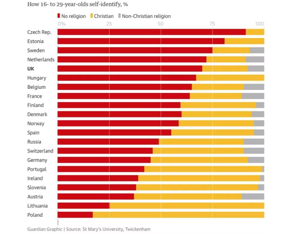 Western European society has been building wealth and economic stability throughout the recent decades, while it is proven that “...people who experience ego-tropic risks during their formative years (posing direct threat to themselves and their family members) or socio-tropic risks (threatening their community) tend to be far more religious than those who grow up under safer, comfortable, and more predictable conditions” (Norris, Inglehart, 2004, 2011).