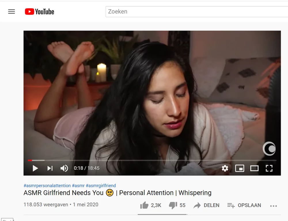 With YouTube, one would assume that care and attention are a one-way-street. Yet, in videos like ‘ASMR girlfriend needs you’, you emphasize that you need your viewer's attention. This creates a sense of reciprocity. Why is that important?