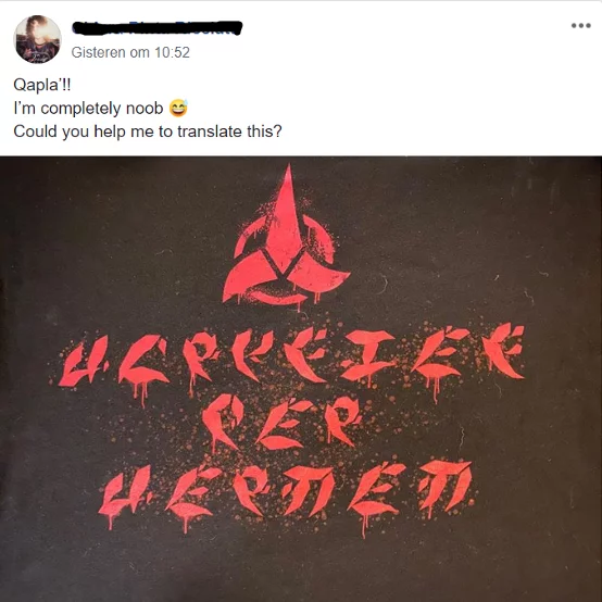 So these conlangs are not only used in novels, films or language apps, but also on internet forums, blogs and social media. For instance on the social media platform Facebook. There are several Facebook groups with members who are interested in a certain constructed language. Within these groups the majority of the conversations and messages consist of asking questions about the language or how to translate a certain sentence into a fictional language and vice-versa.