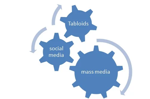 Three wheels are constantly turning in a validation debate, in which the tabloids and the social media do most of the work, while the mass media perform a relatively passive, responsive but nevertheless decisive role. Debates about the validity of news items are hot and hectic in the first two media channels, and these validation debates are taken up by mass media at various stages of development. Thus, mass media very often make an item not just out of the facts of the case, but about the debates on the validity of these facts in other media channels.