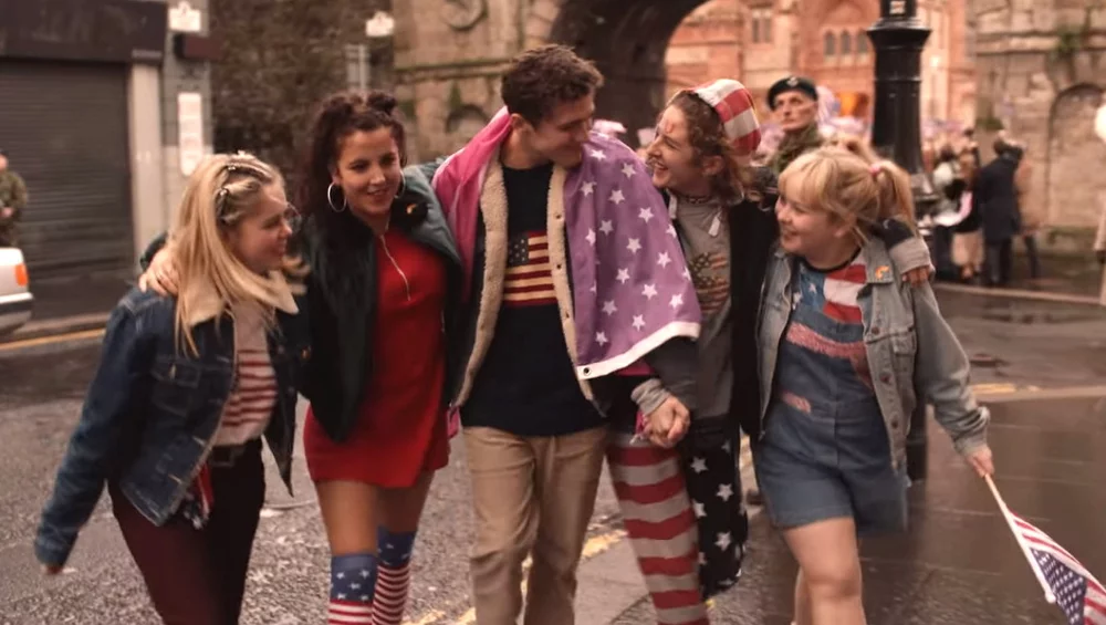 In 2018, British Channel 4 broadcasted the first season of Derry Girls, a show that, at first glance, seemed to be a comedy about a couple of teenage girls in Northern Ireland of the ‘90s. However, the series proved to be more than just an entertaining coming-of-age story, as it followed two intertwining narratives - a fictional one, about the relations of the main characters, and a realistic one, about the political conflict in Northern Ireland of the time, also known as The Troubles. This article will look at how the TV show portrays truthful and fictional narratives to create a realistic piece of media, represent the time frame and gain the attention of viewers.