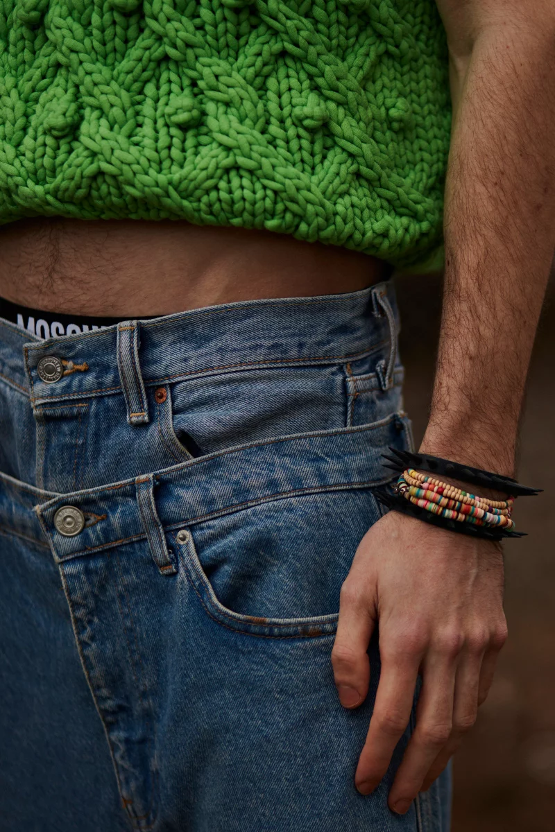 Revealing skin within gender-neutral fashion is definitely a more upcoming trend. As seen in Figure 4, where the sweater is short enough to show the outline or pelvis, also commonly referred to as the V -shape, an attribute some men have and others do not. This shows that there is an interest in this part of the male body, which used to be hidden.
