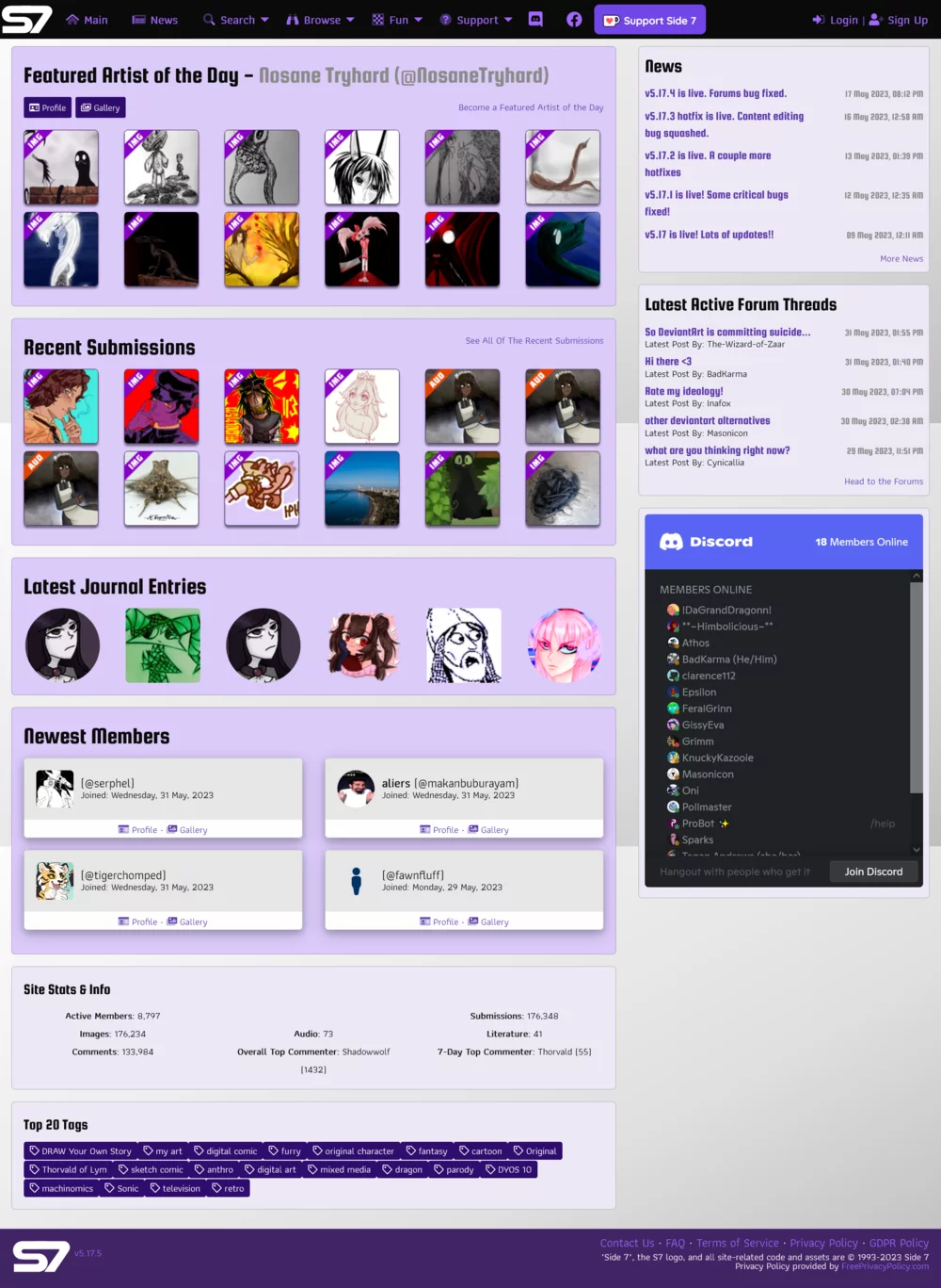 Meanwhile, started back in 1993, Side 7 is one of the small-scale alternatives to DeviantArt. As an independently ruindependently-run website, it had a more traditional interface, as well as less functionalities compared to DA. Under this limitation, it is run with the principle of being a “cordial, friendly, and “small-town’” community that is free to usefree-to-use, a contrast to DA’s various paid tiers with extra functions. With the site prohibited users from submitting AI art in December 2022, some expected a large influx of migrated users, but it’s not certain on the scale and effect they’ll have.