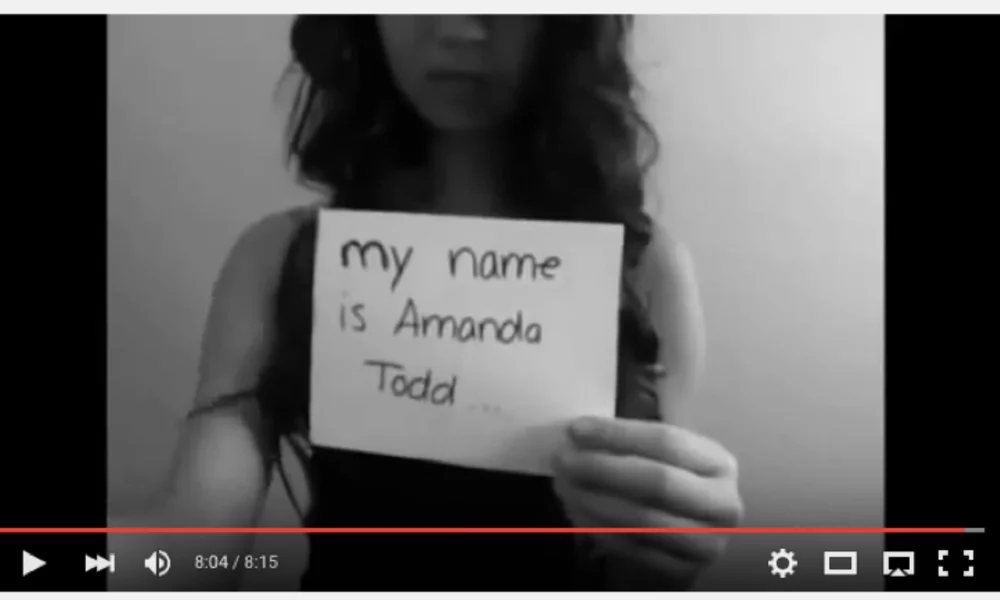 Amanda Todd made a YouTube video a little over a month before she committed suicide. In the video she shows a piece of paper that says: “I can never get that photo back”