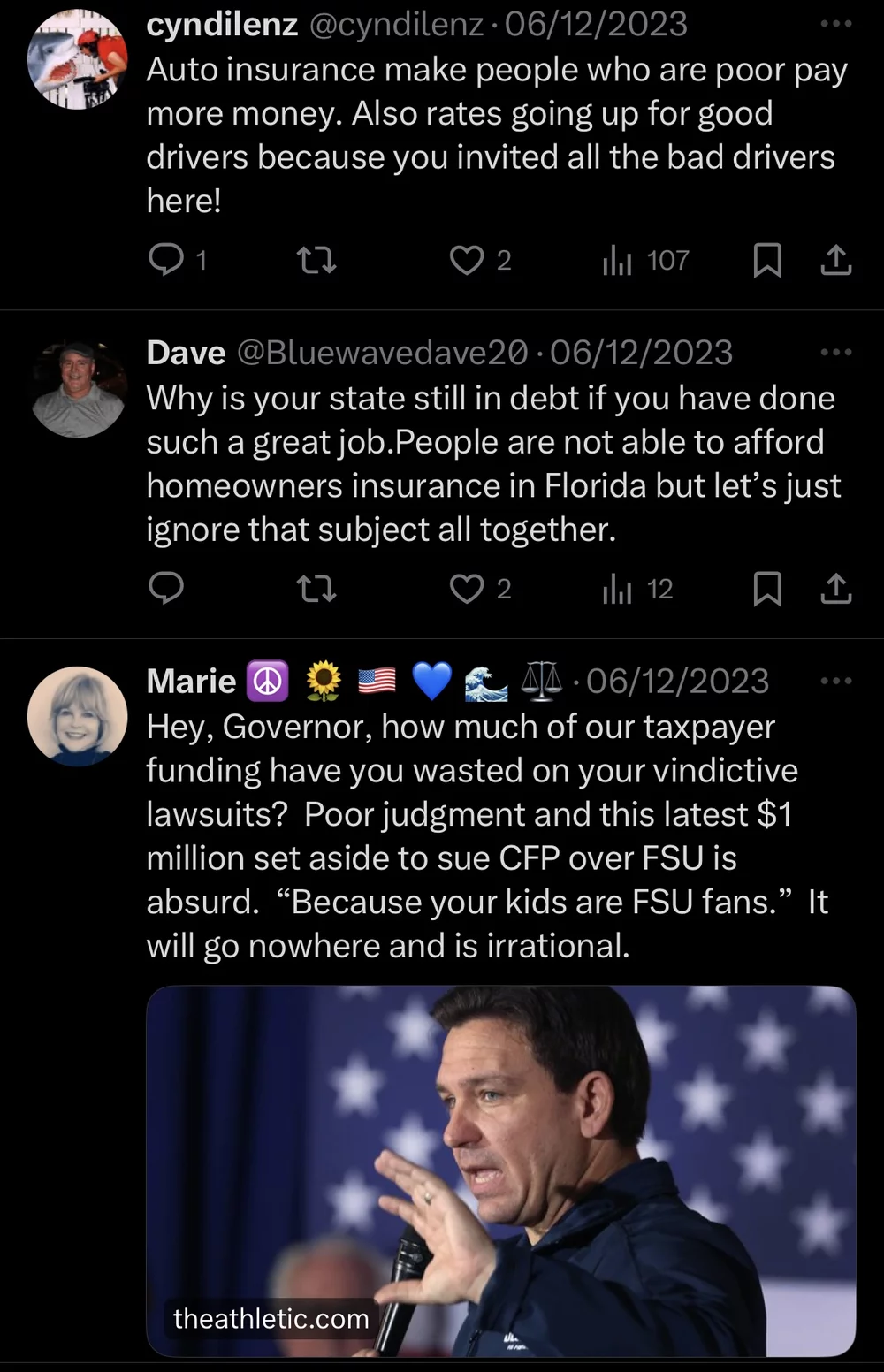 Therefore, by having commentators underneath Ron DeSantis' Twitter communication, he generates the algorithm in his favour, as he receives more attention from it. The view above is algorithmic activism, which means that commentators interact within the algorithm, contributing to the spread of the politician's message (Maly, 2018).
