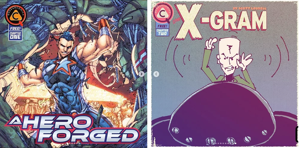 The crisis has also inspired Superhero comics to explore formats and platforms where the genre is not regularly seen. For instance: independent comic book author Daniel Arcos started producing podcast adventures of his superhero creation Rboy, tied to the character’s comic books, in the manner of a 1930-1940s radio series. Superhero comic book writers Scott Lobdell and Frank Hannah, currently working on DC Comics titles, started producing and publishing independent comics on Instagram “to offer free content to fans and readers stuck at home during the quarantine at a time where new comic books are scarce”. Lobdell, who had written some of the most popular and best-selling X-Men comics in the 1990s, is writing and drawing X-gram, an original and unofficial X-Men comic strip, published on Quarancomics twice a week. Quarancomics also feature superheroes in short animations and pin-up illustrations by several artists, as well as on another comic strip by Lodbell, A Hero Forged, drawn by Teen Titans comic artist Brett Booth.