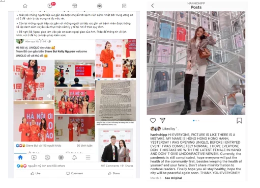 The citizens started to upload the image of another woman who has similar appearances to Patient 17, showing that she had attended many events. People thought that ‘she’-as the Patient, went to many places without quarantine after returning to Vietnam. It is seen that people found the image of the other celebrities that they had posted on social media, claimed that it was Patient 17. It leads to the damage of people’s reputations, they might receive negative comments for the actions they did not do. The woman who was misidentified as Patient 17 also had to confirm that she was not the targeted person on her personal Instagram account. Digital vigilantism participants may not be aware of the actual impact of their actions (Ronson, 2015). The citizens who seek the information can “pursue informational goals such as identifying a targeted individual,” the data cannot be guaranteed for the exact purposes (Trottier, 2015). The extensive consequences might affect many people because of the wrong identification.