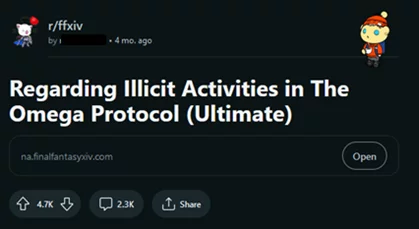 This piece explores what resulted from the Omega Protocol controversy in the Final Fantasy XIV community, as claims of cheating reshaped long-standing standards of morality in online gaming. By using an ethnomining method (Digital Community Analysis), it examines the discussions inside the community on websites like Reddit, exposing complex relationships between users and creators and how they affect community trust. In the end, the study reveals how gaming communities react to cases of cheating and how this affects how other players see their reputations.