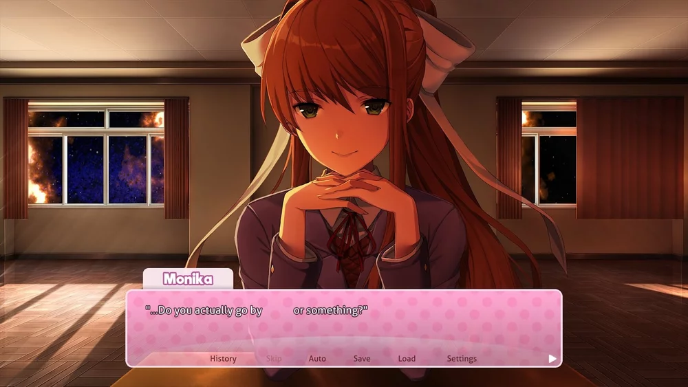 Doki Doki Literature Club! is, at first glance, a simple anime-styled dating simulator, but as the player follows the narrative and pursues one of the love interests, the game shows elements of psychological horror. The player is invited to choose a name for the main character; a male teenager who joins his school’s unpopular Literature Club at his childhood friend’s (and potential love interest) suggestion. From there on, the player gets to create poetry to impress three of the four club members and engage in the new routine of the main character as everyone prepares for the school fair (Van Den Oudenalder, 2020).