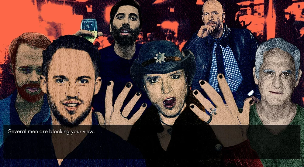 Washko’s project results from intensive research into the community of pick-up artists. The practices and phrases featured in the game were derived from interviews she conducted with the “gurus” themselves, as well as the materials they provide for their students online. This has created an immersive experience within the game: the player gets to witness the courting of pick-up artists from the viewpoint of a woman trying to find her friends during a night out (Hudson, 2020). The choices the player makes do not lead to a happy ending for the main character and safely returning to her group of friends; instead, fleeing from one uncomfortable encounter starts another, potentially an even more aggressive one.