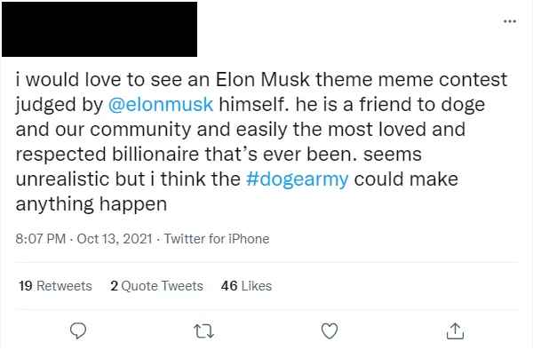 While the mission is clear, to become the most popular cryptocurrency, the coin is still connected to Elon Musk forever which does not seem to be an issue for the company. On their website and on their blog, they do refer to Musk regularly but that discourse is very different from their discourse on Twitter. This is because on Twitter, they emulate the discourse of a ‘regular’ Musk fan. They tweet at him often and reply to his tweets, seemingly to try to be recognised and acknowledged by Musk which is behaviour seen from other Musk fans.