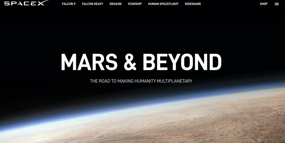 The mission of SpaceX is to take steps to become a spacefaring civilization and to eventually make humanity multi-planetary (SpaceX, 2021). The company’s website, among others, presents a separate ‘Mars & Beyond’ section (see Figure 2). The title ‘Mars and Beyond’ was first launched in an episode of the Disney series and it discusses mankind’s life on different planets, eventually focusing on Mars. The episode brings to life the science fiction novel ‘The War of the Worlds’ of H. G. Wells which deals with the Martian invasion of Earth, and E. R. Burroughs’ ‘Barsoom’ series that focuses on life on Mars (DisneyWiki, 2021). The dream of Mars inhabitation, in line with Californian ideology, takes its inspiration partially from sci-fi novels.