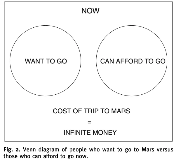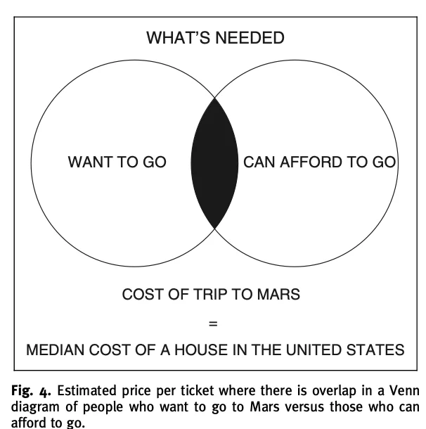 In the presentation, Musk mentions the prices of Mars travel for ordinary people. He states that currently, a ticket would cost $10 billion (see Figure 8), however, the goal would be to drop the price to $200,000. Musk is convinced that “a relatively small number of people from Earth would want to go, but enough would want to go who could afford it to happen” (Musk, 2017). For others, the billionaire advises getting sponsorship or saving up “given that Mars would have a labor shortage for a long time” (Musk, 2017). What it shows is that a limited amount of people who could pay astonishing prices to move to Mars would do it to sustain the same labor system currently existing on Earth.