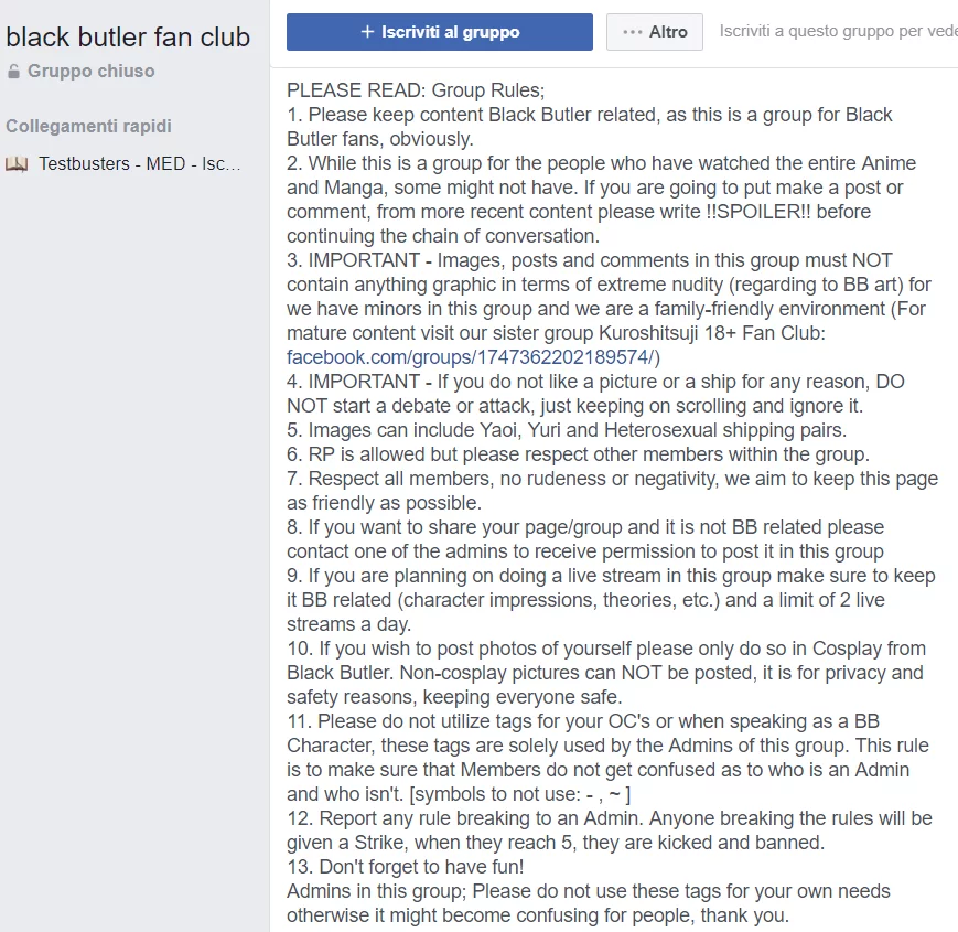 Despite this, it is clear that local groups have more difficulty growing, as the small number of participants show (e.g. BlackButlerItalia, NarutoItalia in Italy). We can conclude that when English is the main language, a community has more chances of becoming popular, as English is a lingua franca on a global scale (a language that is adopted as a common language between speakers whose native languages are differentOxford Dictionaries)