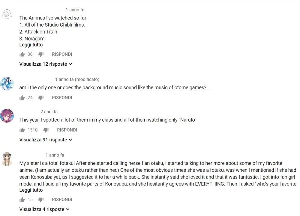 The first example is of someone asking “Am I Otaku?”, followed by a long list of anime the person has watched (a reaction to point number 1 made in the video). Many more write about having spotted fake otaku. Somebody else manages to react to all the points made, saying “you just watched an anime, and you tell everyone that you are an otaku? I watched more than 90 anime […] and I know that in front of good-looking guys you say that you don't know what anime is”. But there are also disagreements, as someone comments: “what I believe makes a true otaku is their passion for anime or manga (doesn’t matter how many you have watched)”.