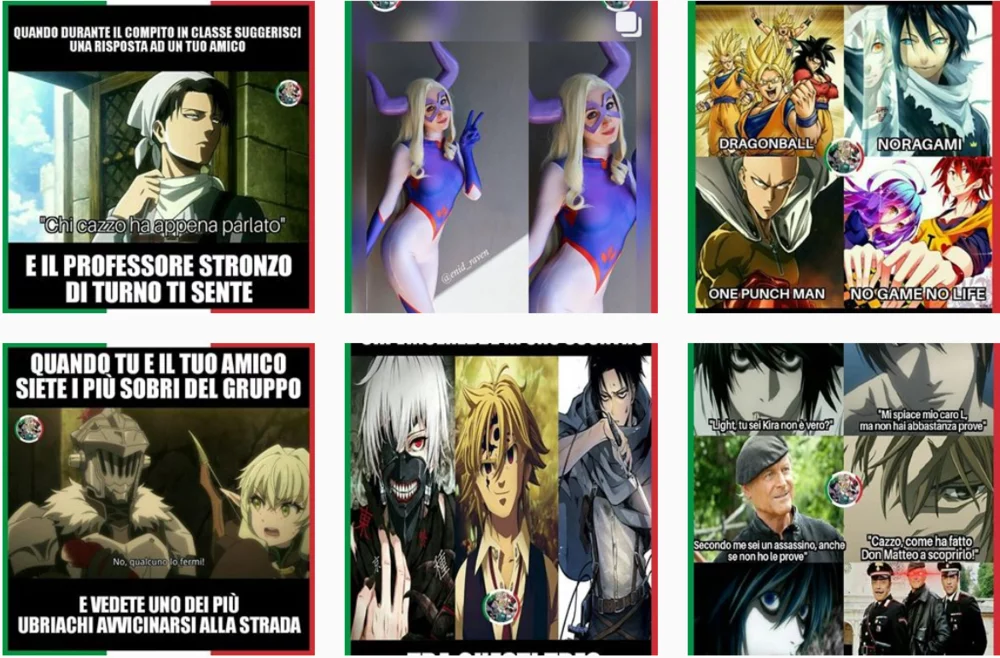 The instagram account shown in igure otaku__italia (a case of translocal otaku culture) is an emblematic example of how social media pages heavily rely on memes to get their likes.